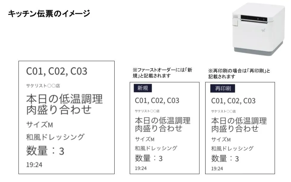 連携しているキッチンプリンターから伝票が印刷されます