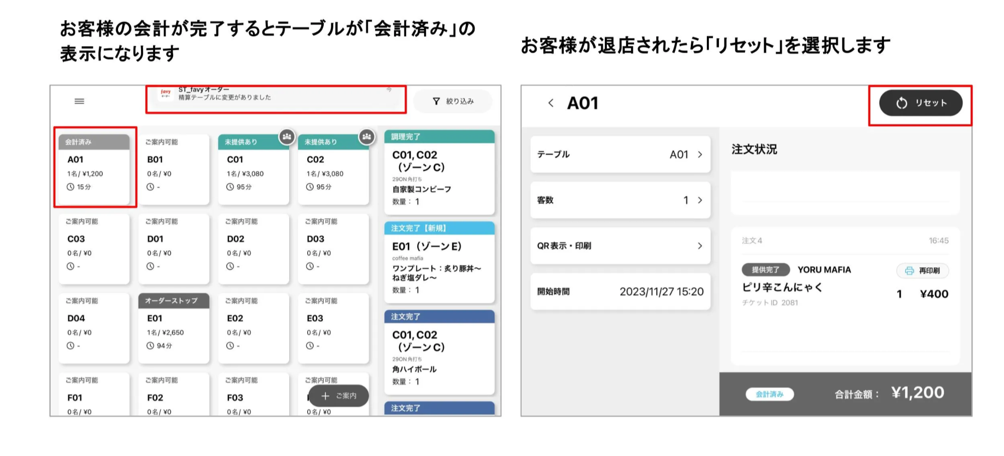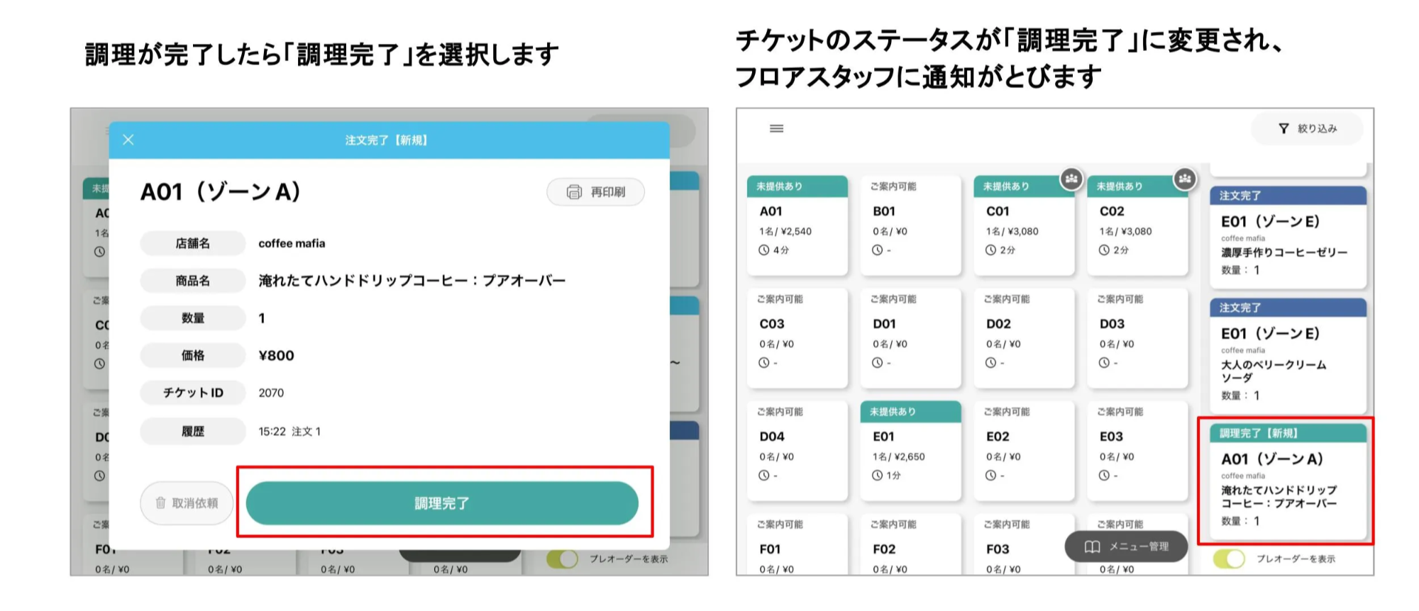 ※フロアスタッフからも注文状況が確認できます。