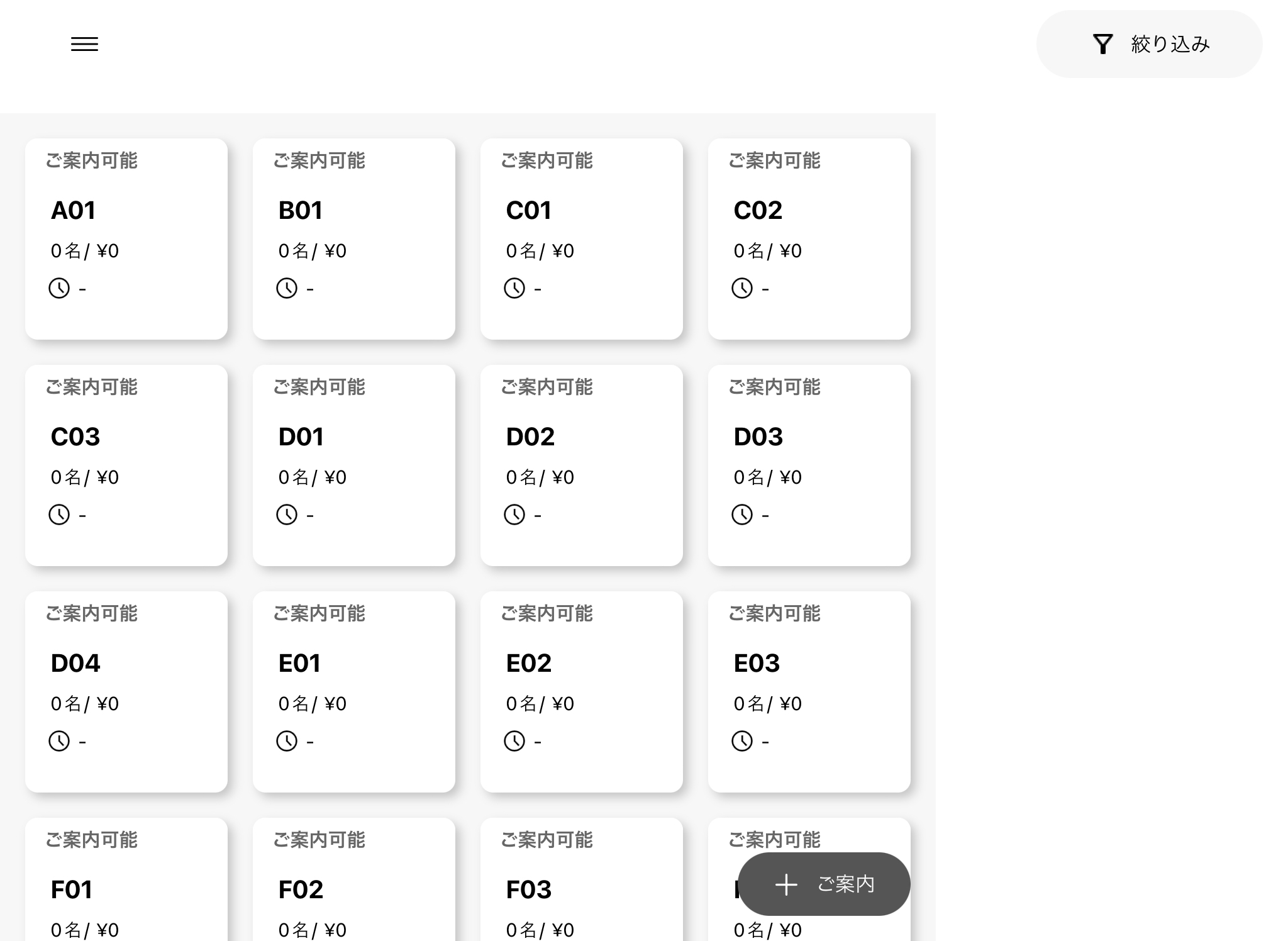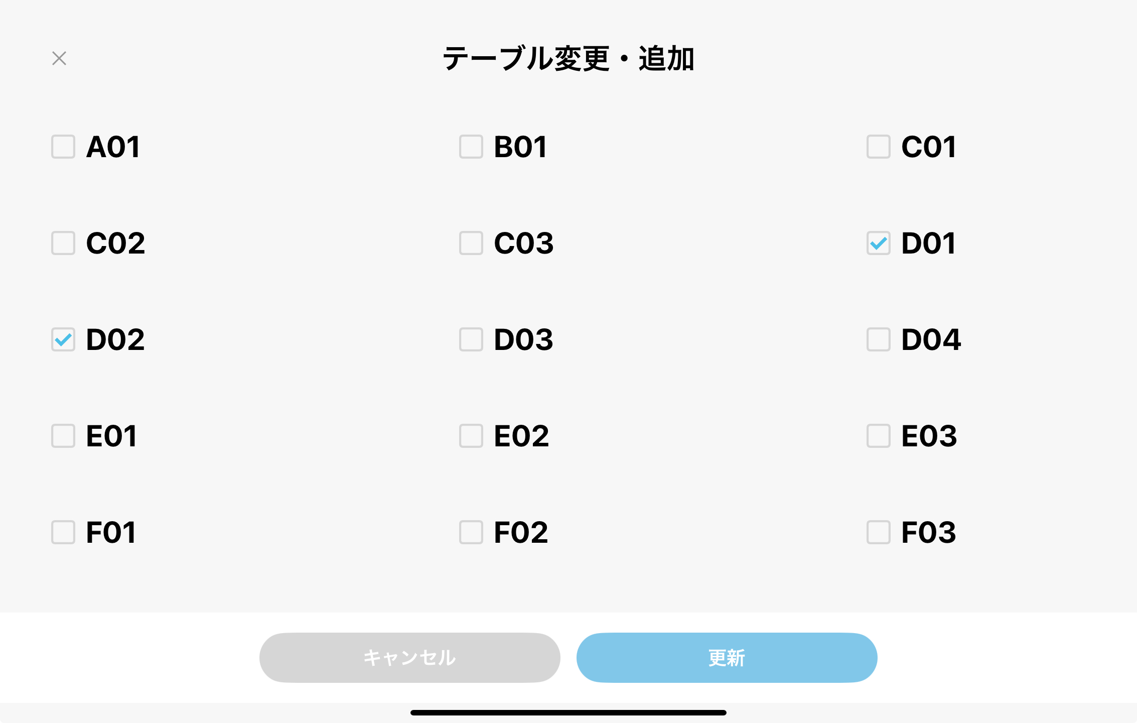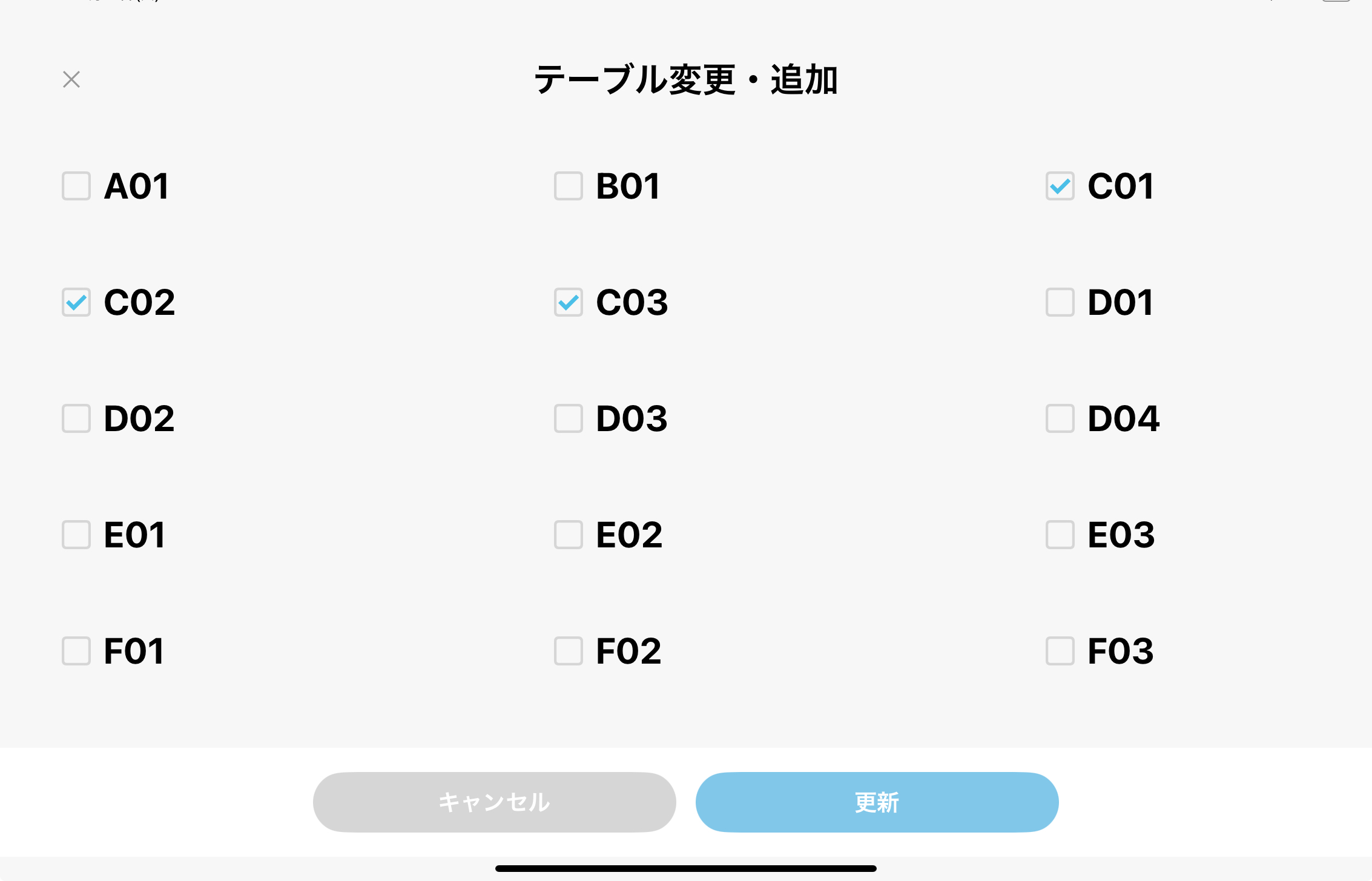 「テーブル」を選択すると、案内可能なテーブルが表示されます。