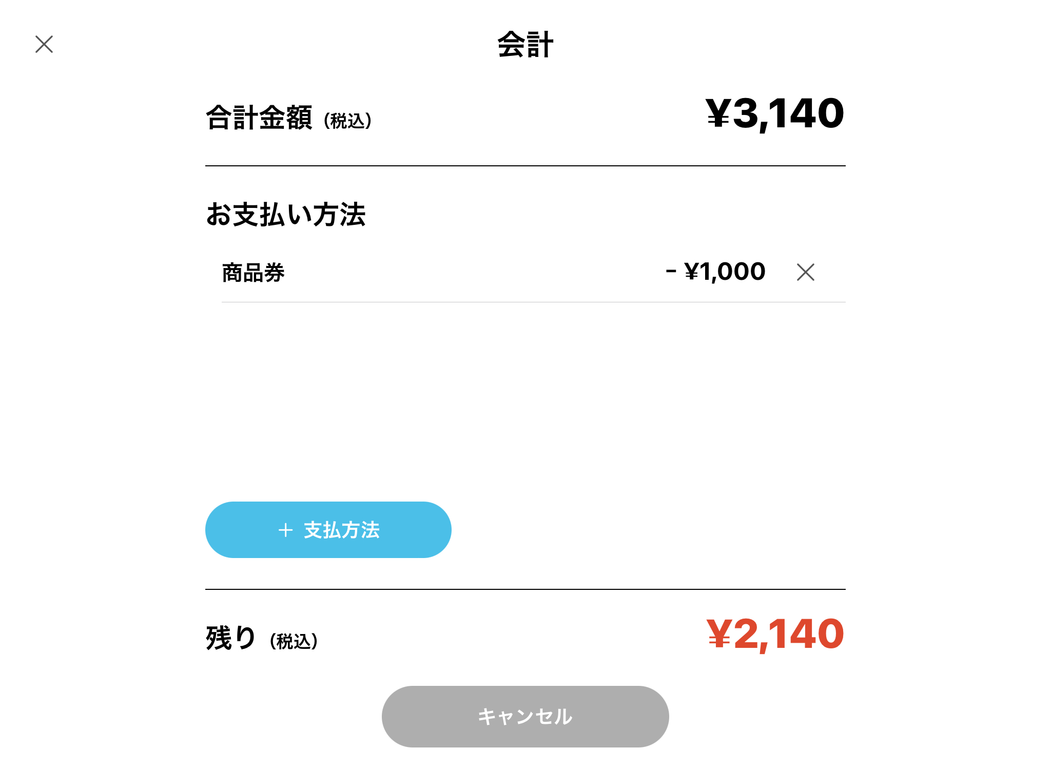 残りの金額が0円になると「会計済みにする」のボタンが表示されます