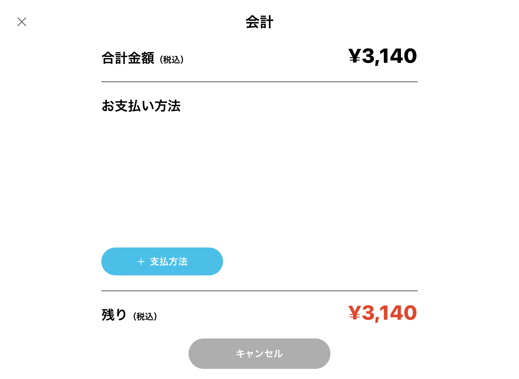 会計金額が表示されています。下部の「支払方法」を選択します。