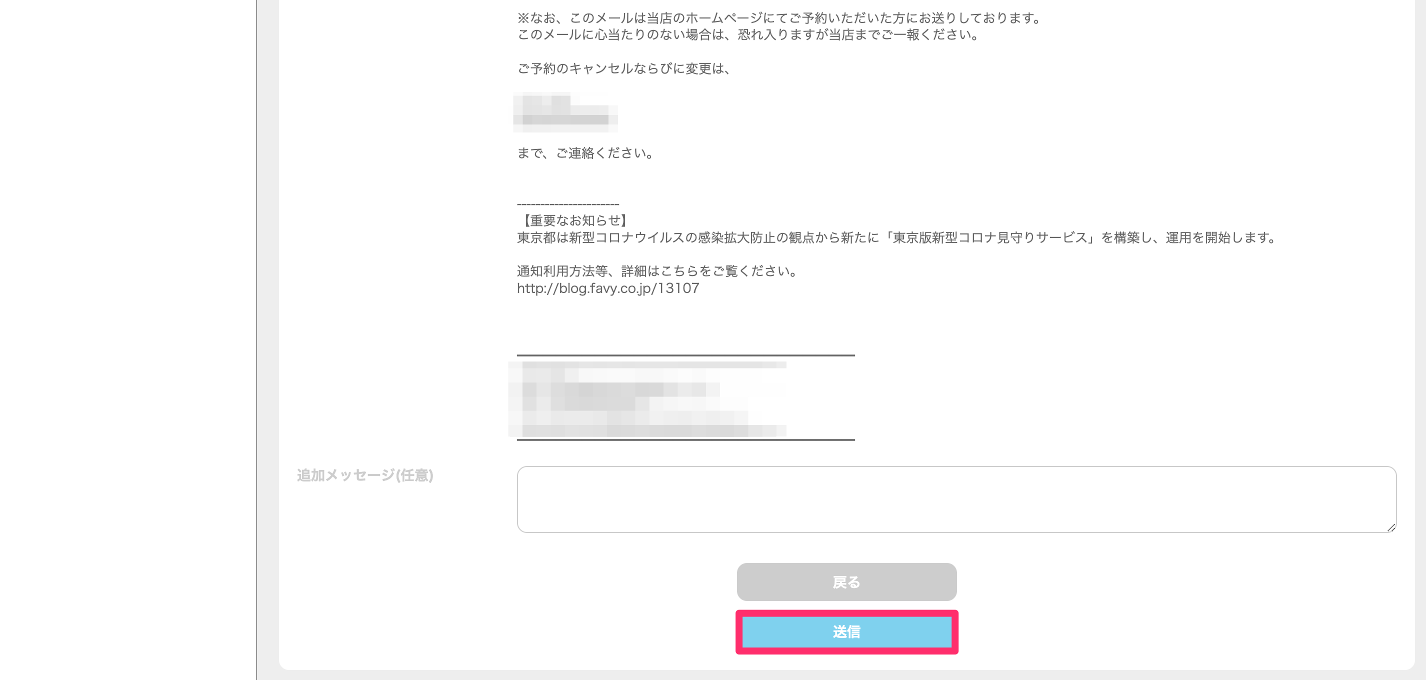 最下部の「送信」をクリックする。※任意の追加メッセージ欄に記入すると、記入した内容もメールに記載されます。