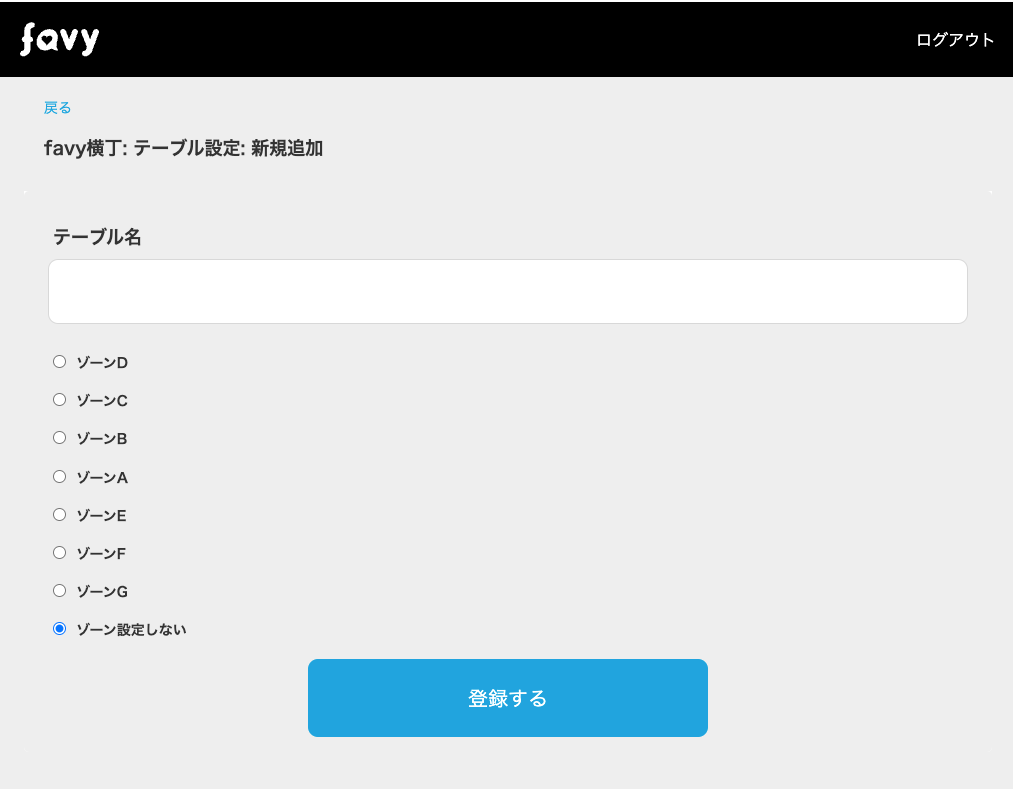 favyモバイルオーダー(事後決済・セルフオーダー)に表示されるテーブルの設定画面です。