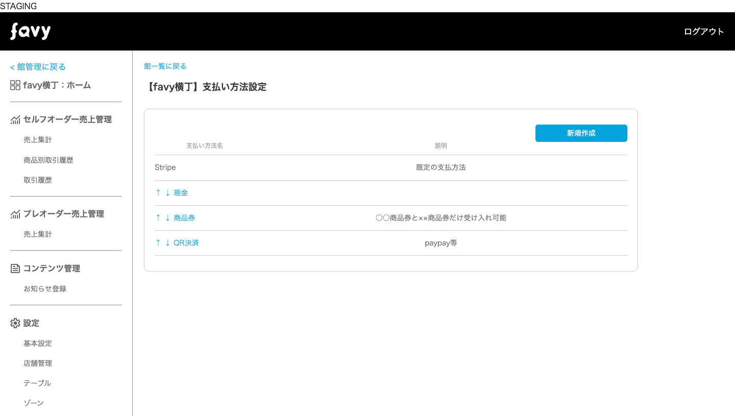モバイルオーダー(事後決済・セルフオーダー)において利用可能な支払方法の一覧を確認できます。