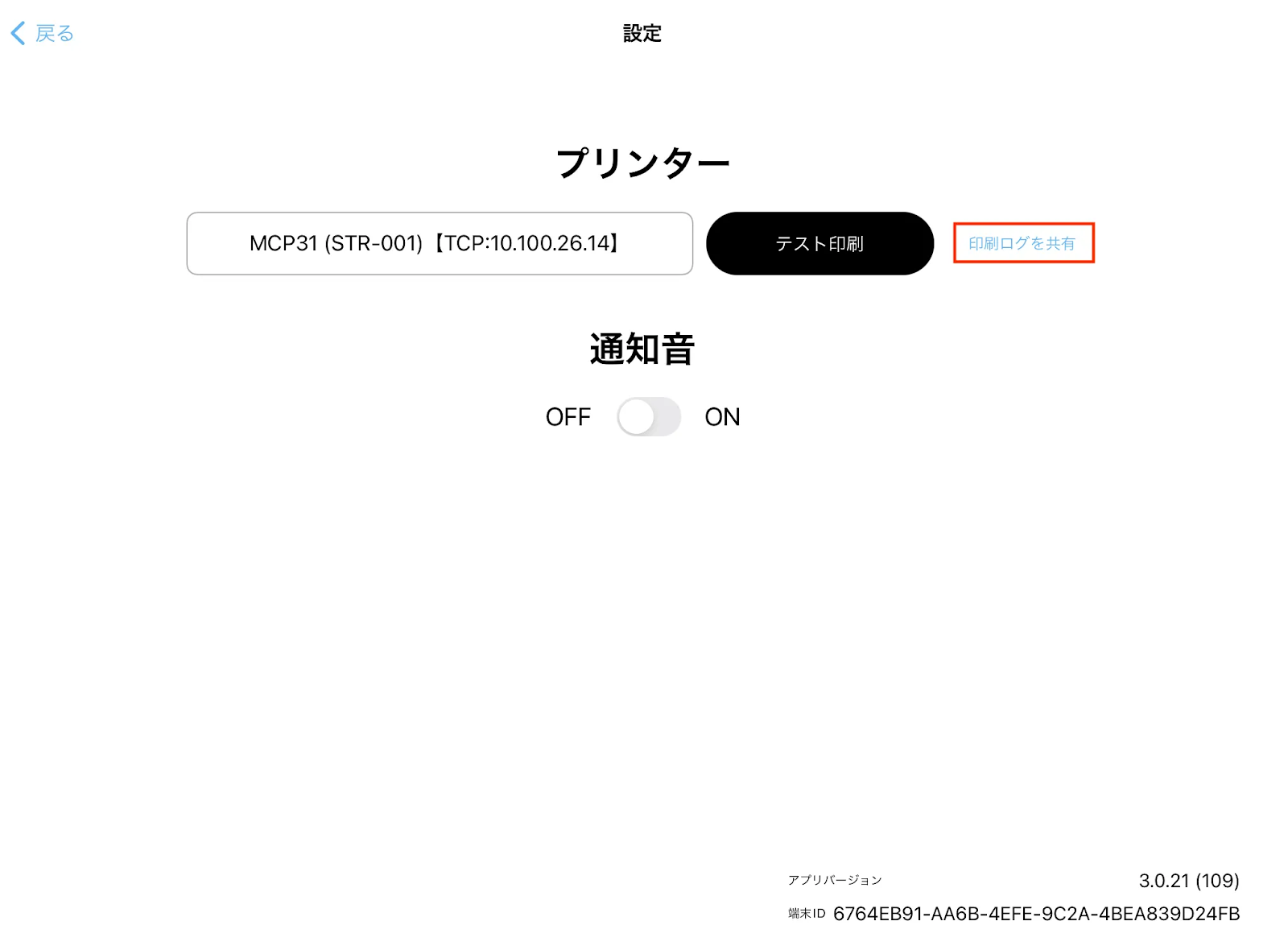 ※「印刷ログを共有」を押すとメールやAirDropなどで印刷ログのテキストデータが共有できるようになります。