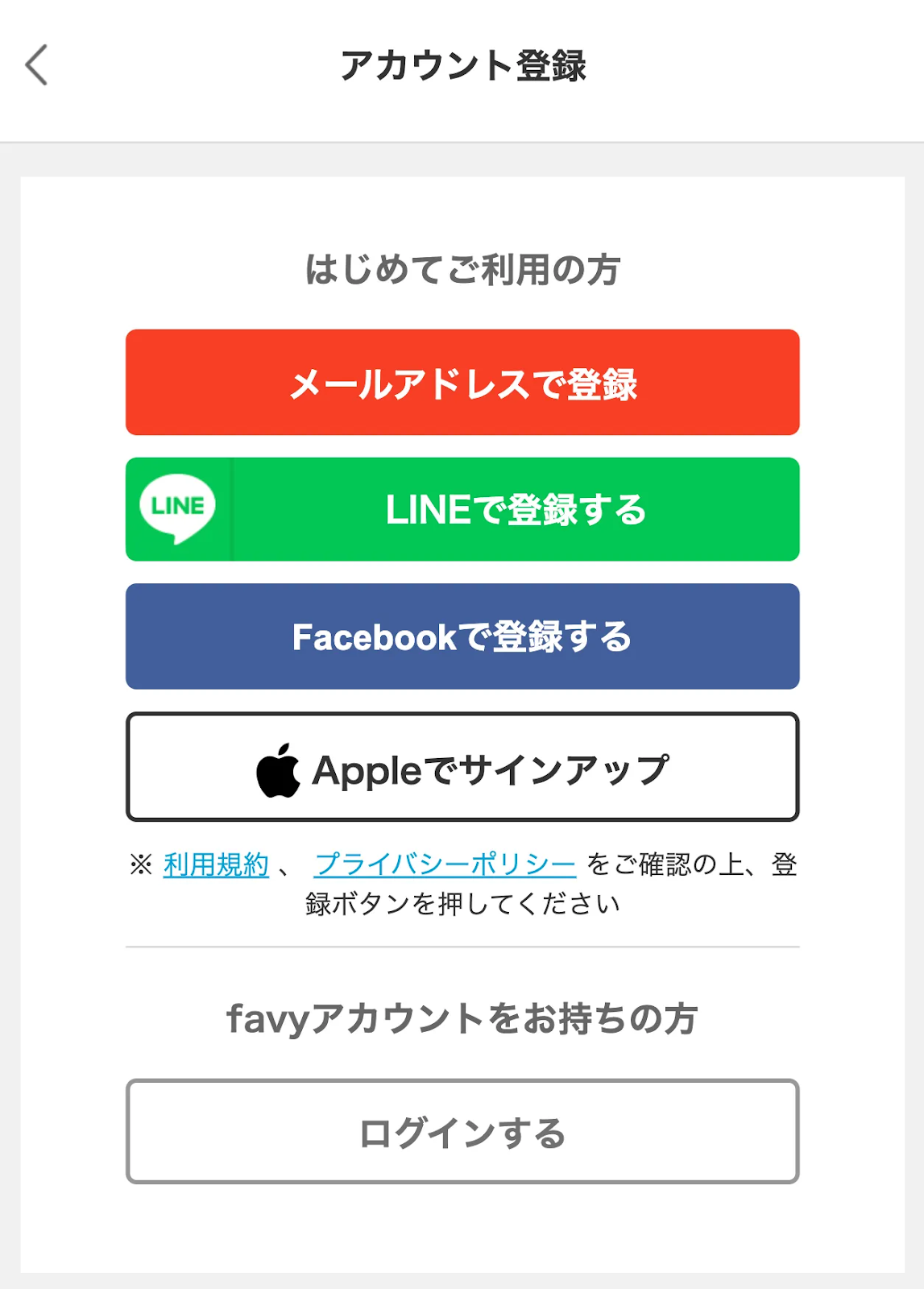 favyの新規アカウント登録時にLINEログインができるようになりました。