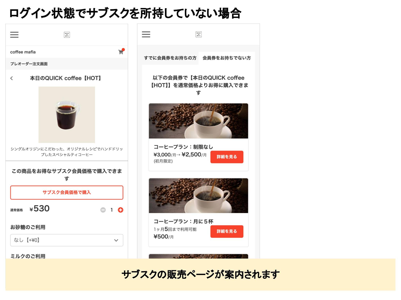モバイルオーダー(事前決済)でサブスク会員価格の商品を販売している店舗の場合、サブスク価格が適用される商品の表示がより分かりやすくなりました。