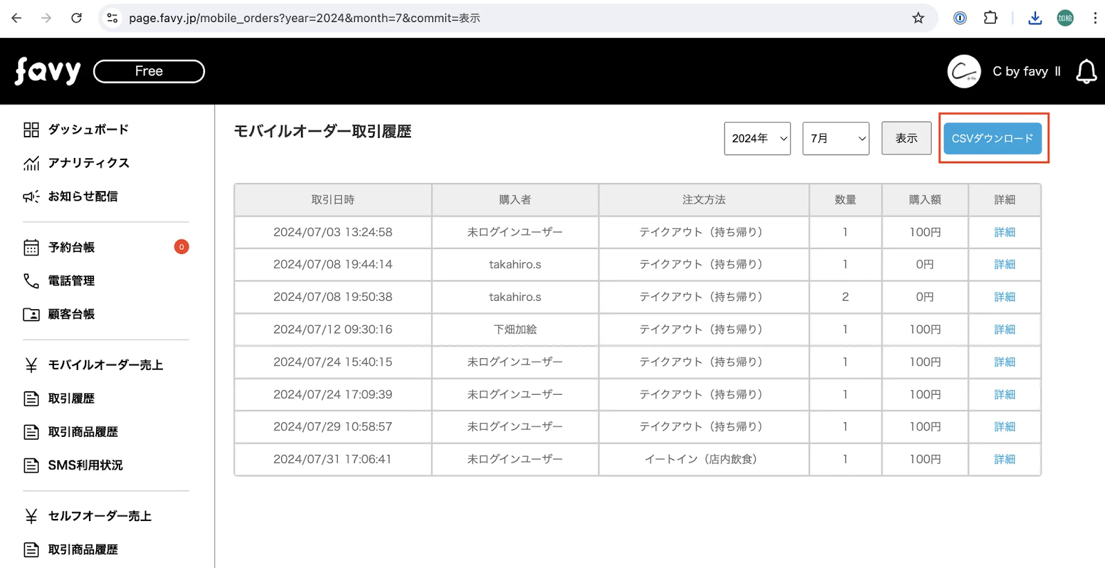【モバイルオーダー取引履歴】をCSVダウンロードした際、これまで「未ログインユーザー」の場合は、メールアドレスが空欄でした。
