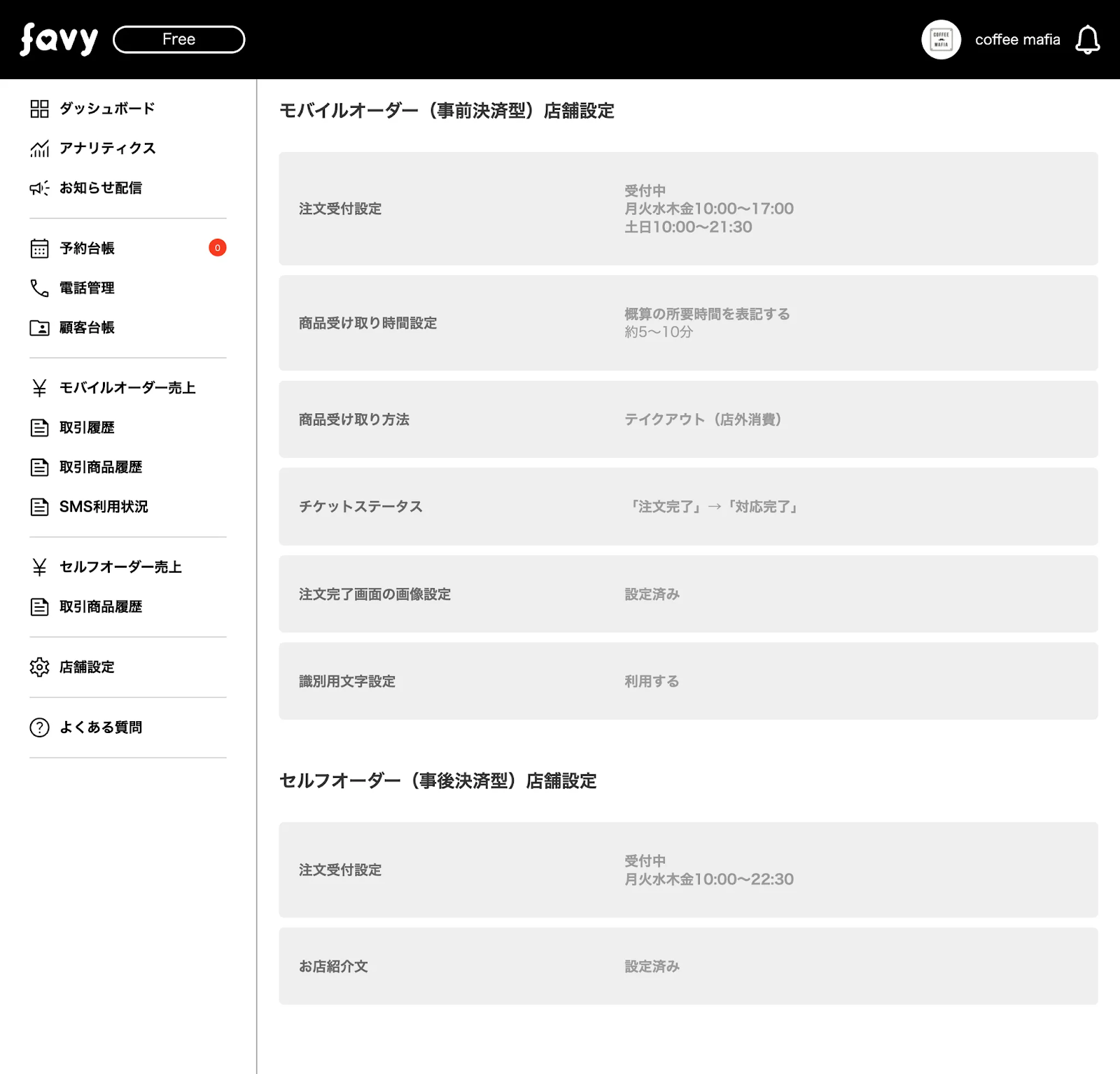 モバイルオーダー(事前・事後決済型)の設定画面が一つにまとまりました