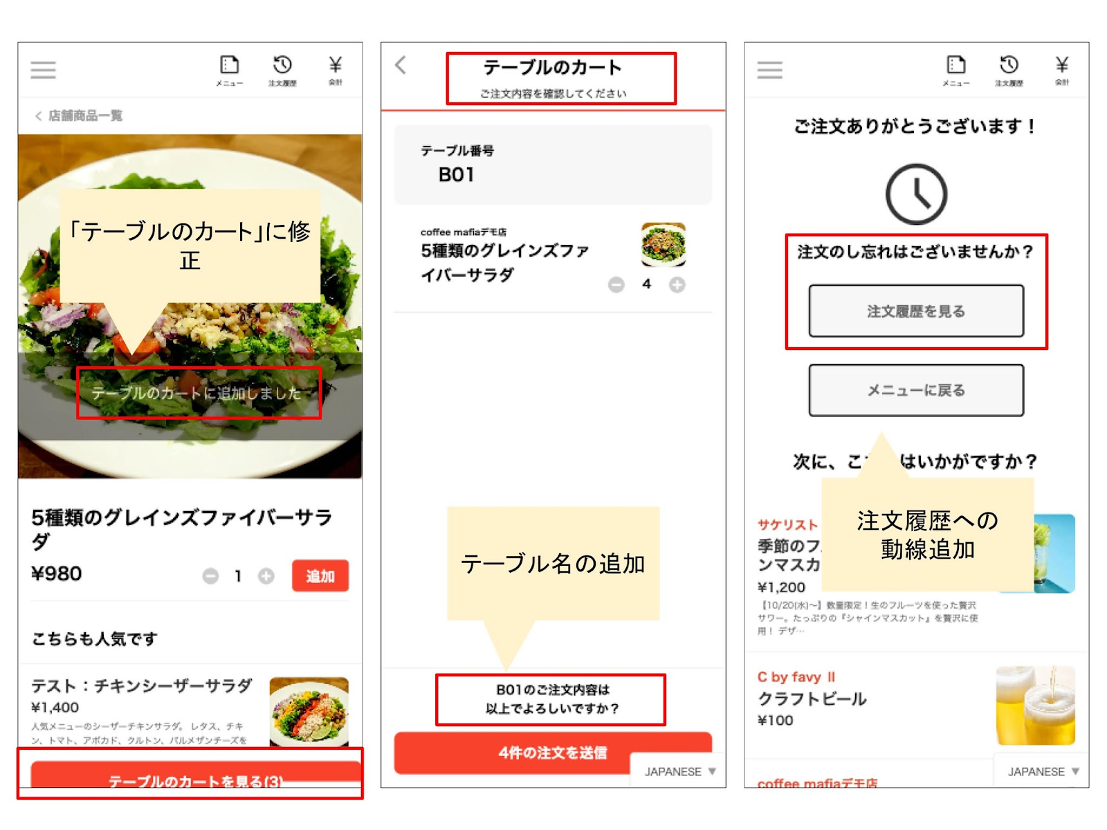 モバイルオーダーの機能追加