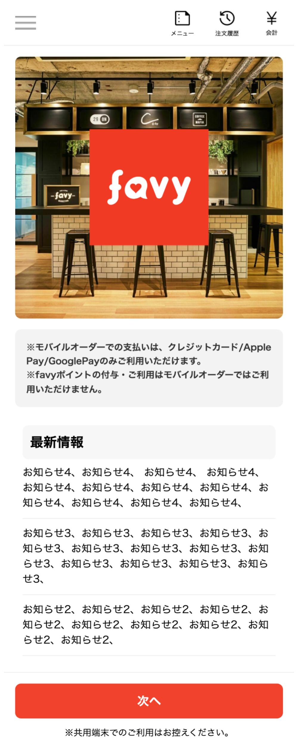 favyサブスクおよびfavyモバイルオーダーの機能追加、改善に関する情報はヘルプセンターの「アップデート」にて、