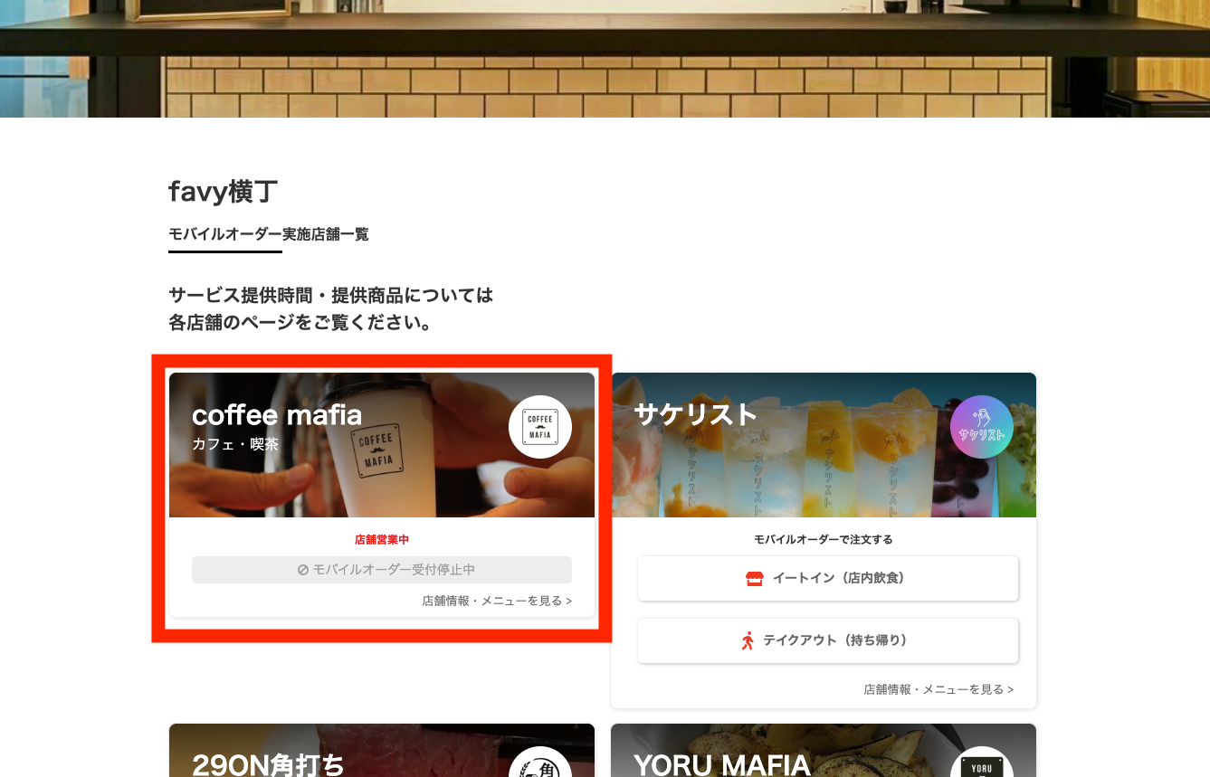 2025年2月5日に追加された機能「注文受付停止機能」に関連し、注文受付停止中の場合、お客様がご覧になる店舗一覧ページで受付停止の表示が分かりやすくなりました。