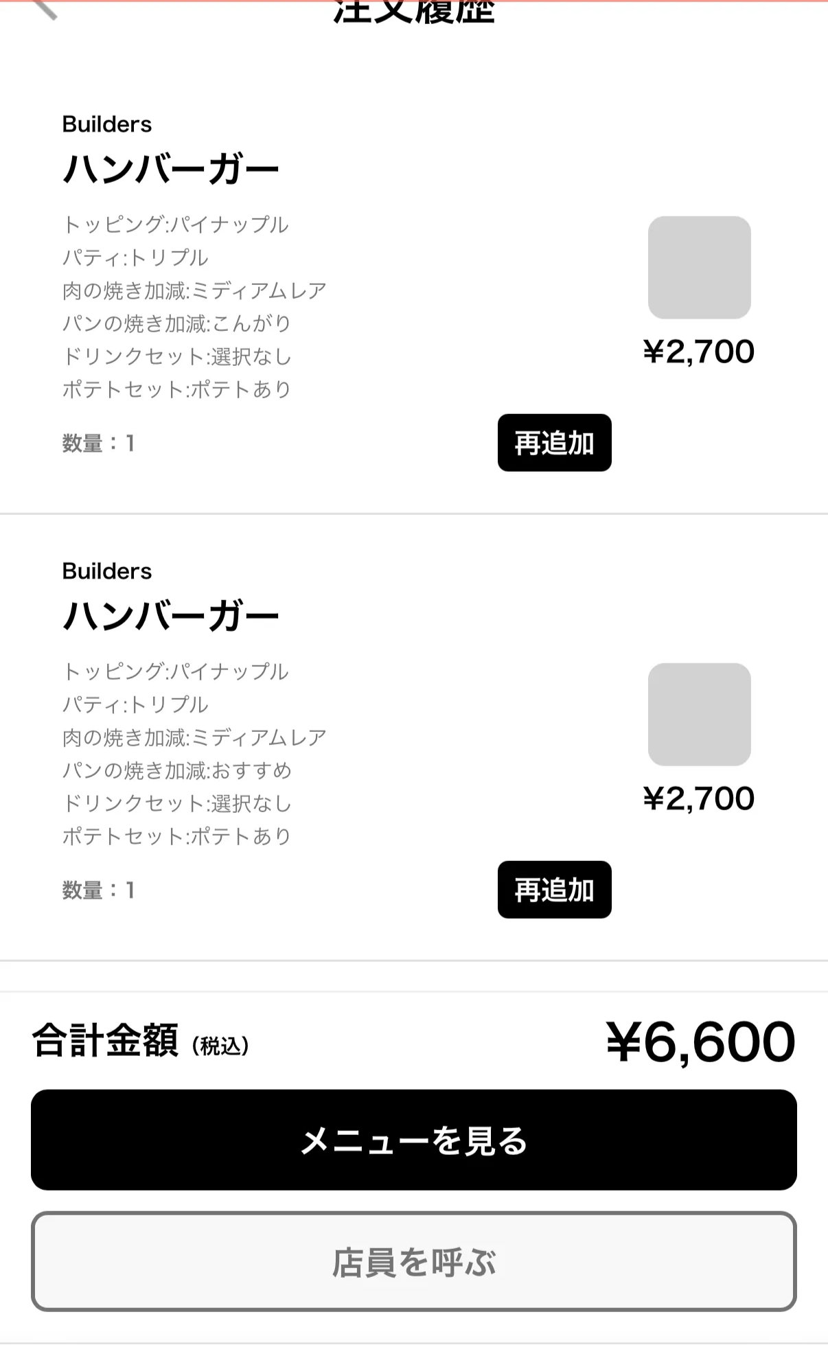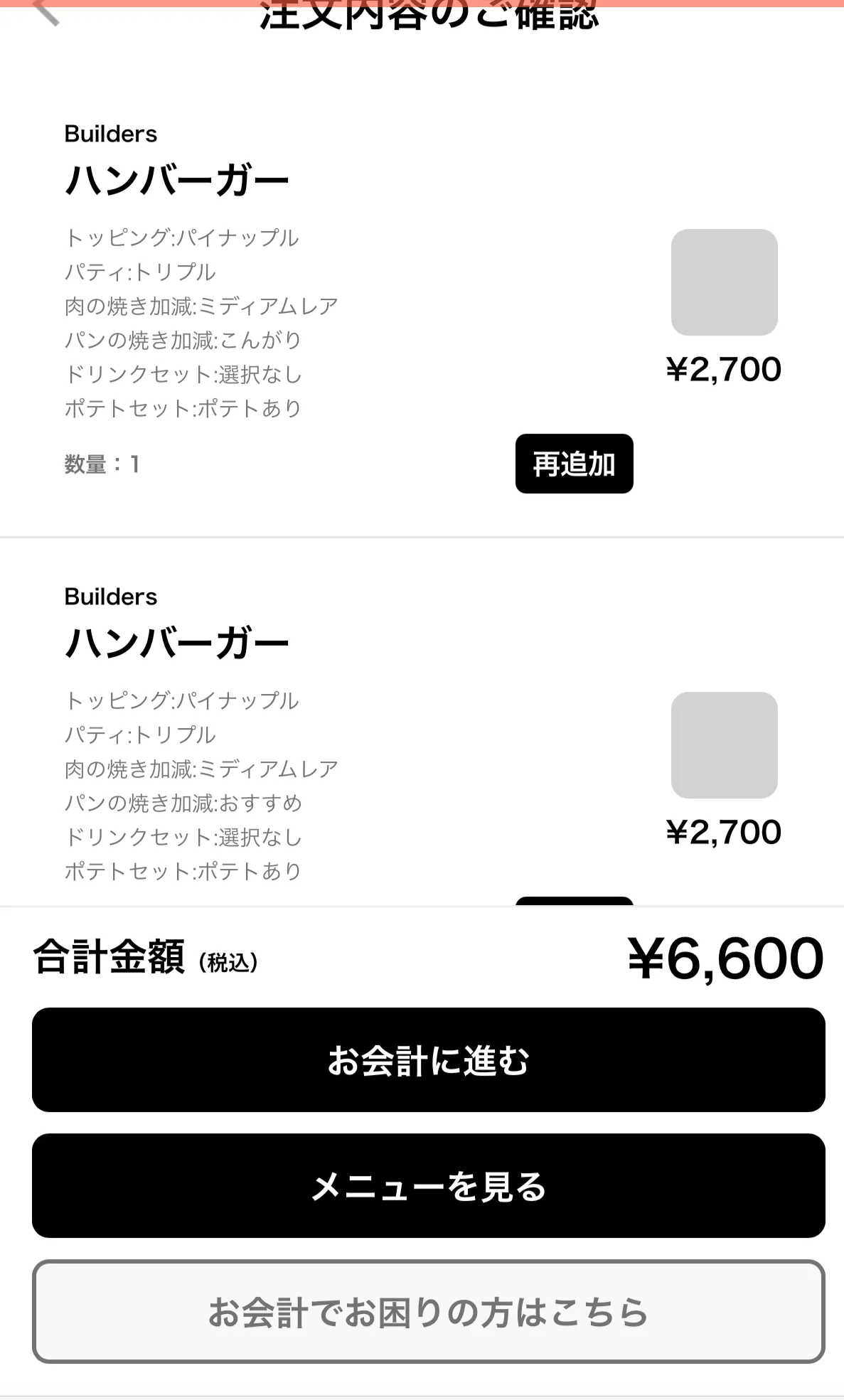 モバイルオーダー(事前決済・事後決済)のお客様画面において、複数のオプションが付いている商品をカートや注文履歴に表示する際、これまでは1行で表示していましたが、各オプションを改行して見やすく表示するように改善しました。