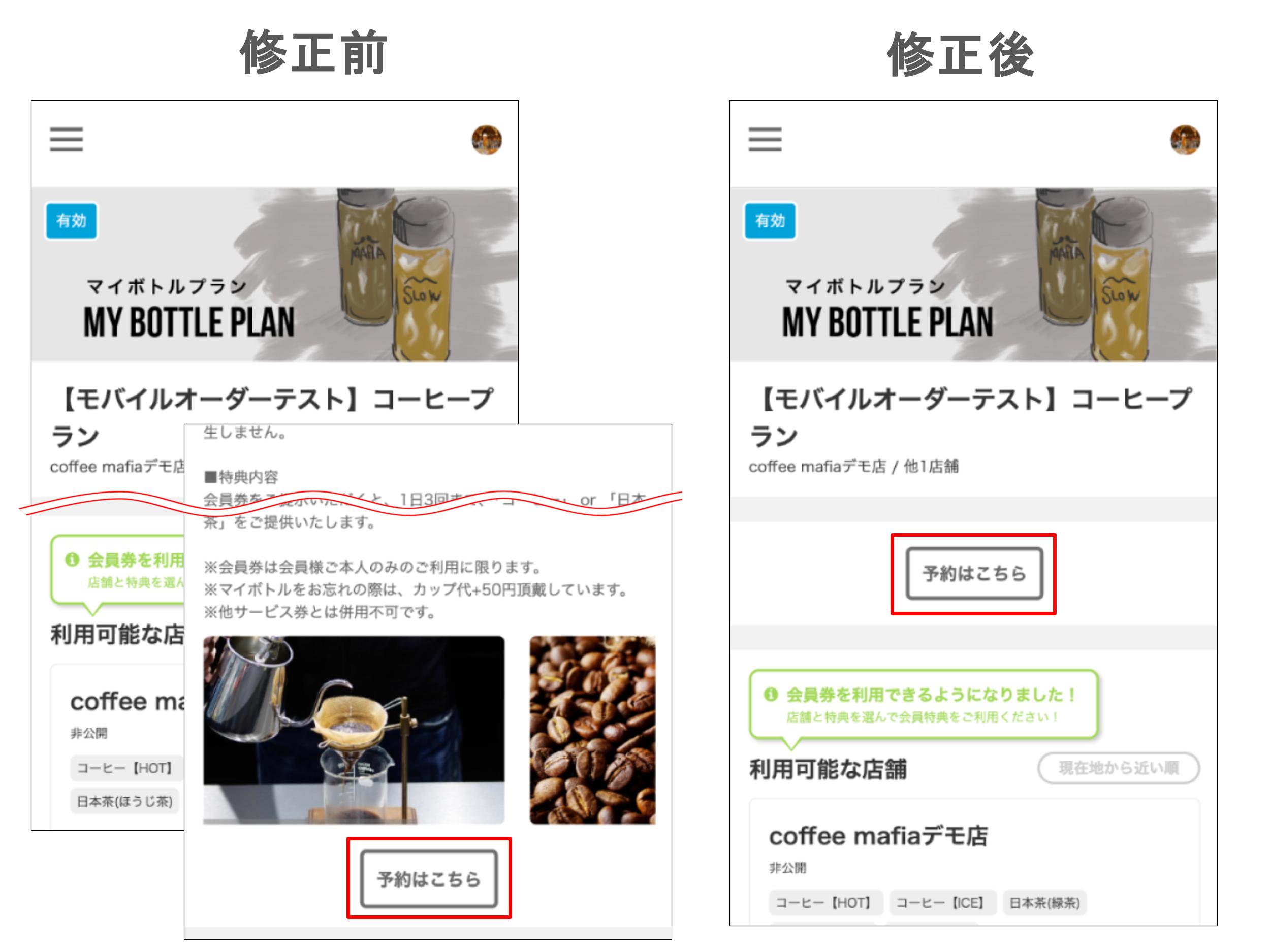 以前は店舗選択画面の下に表示されていましたが、会員券名下に移動しファーストビューで見えるようになったため、よりボタンに気づきやすくなりました。