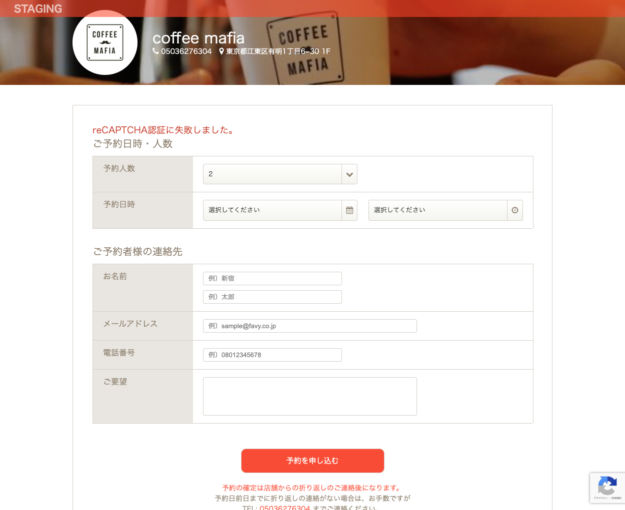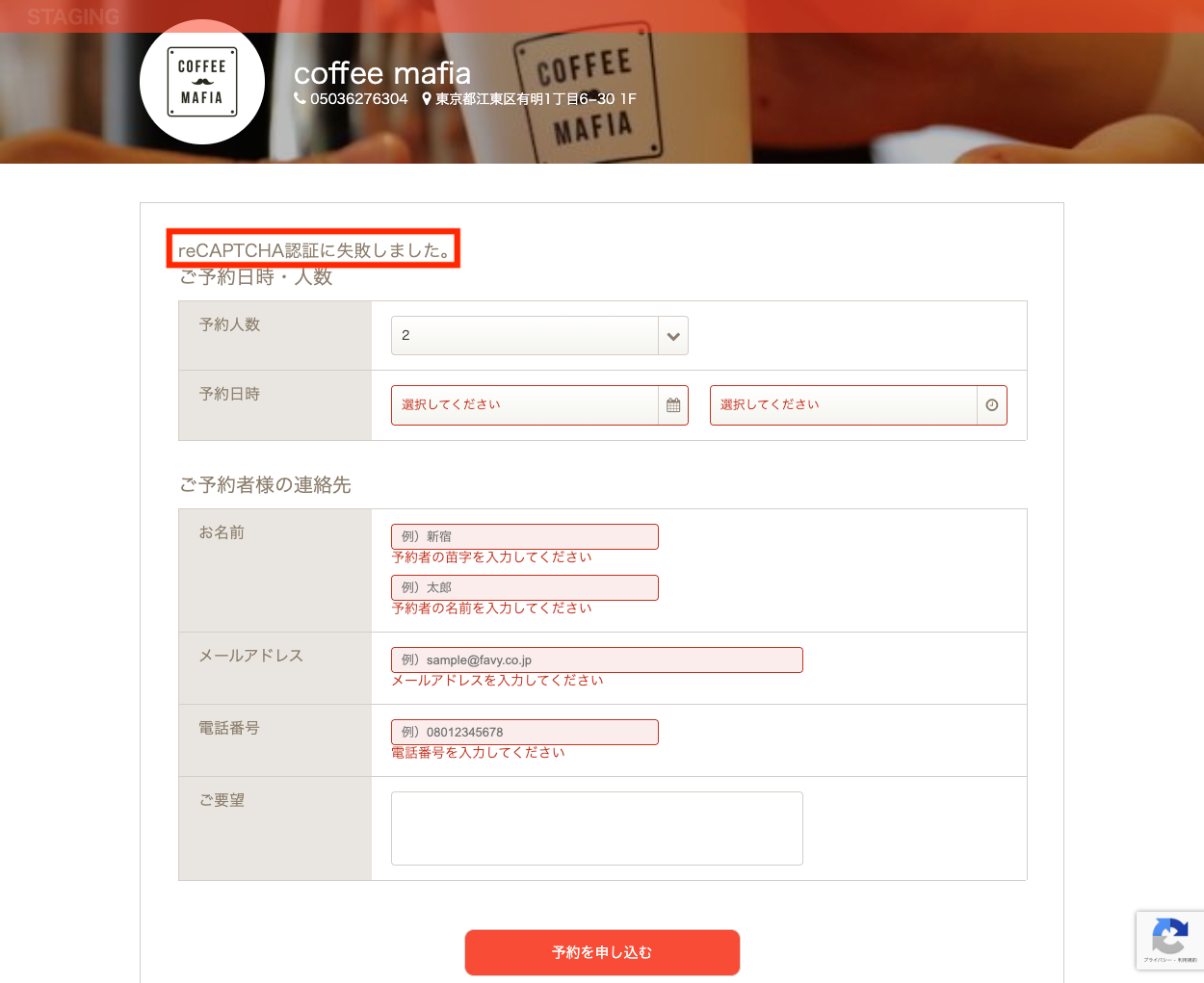 favyページ上の予約情報入力画面で、エラーが出た際の表記が目立つように文字色を変更しました。
