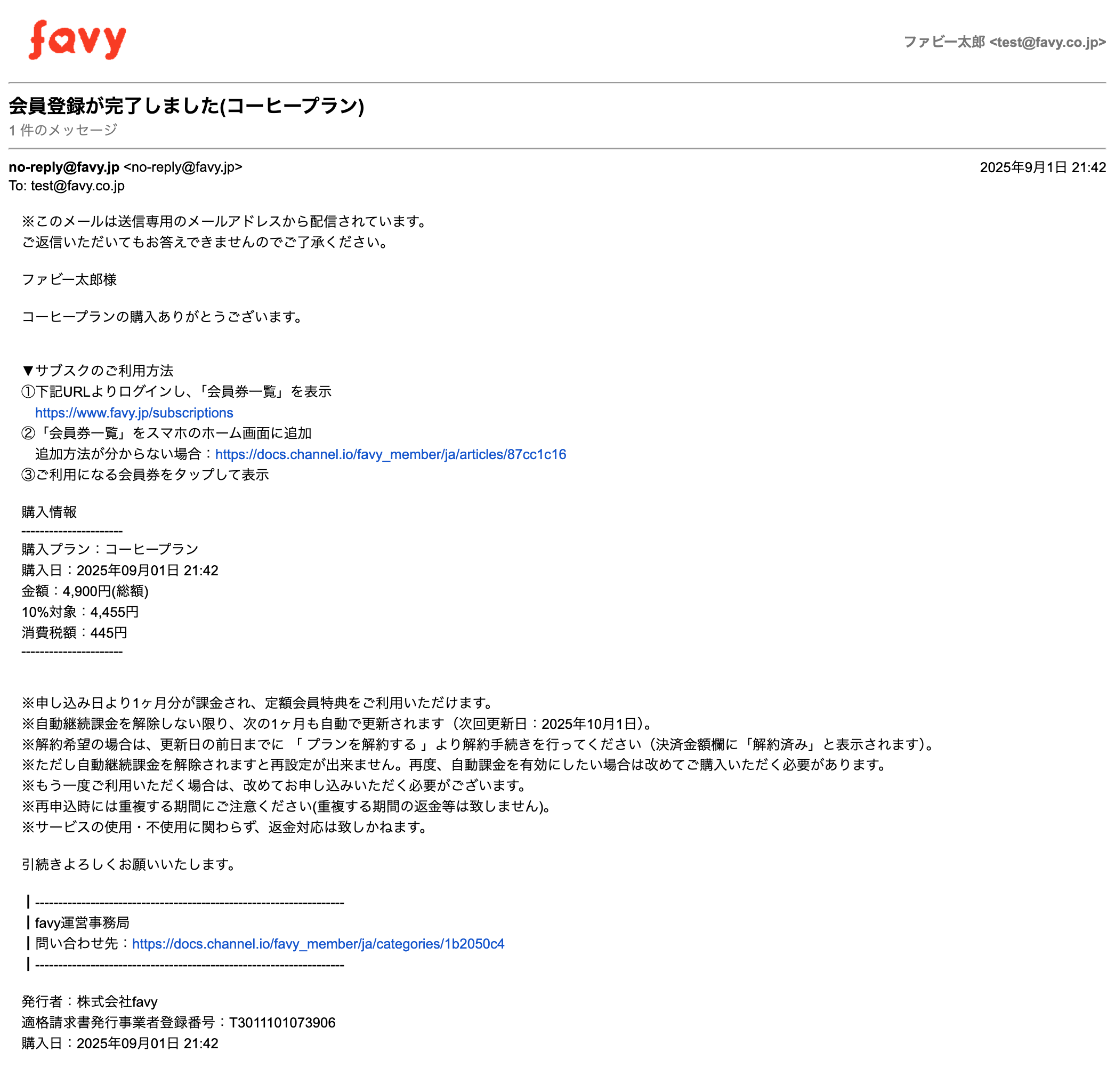 サブスクを購入した際に、お客様には購入完了メールが送信されますが、サブスクの種類によって件名に表示される内容がプラン名もしくは店舗名になり、表示が異なる状況でした