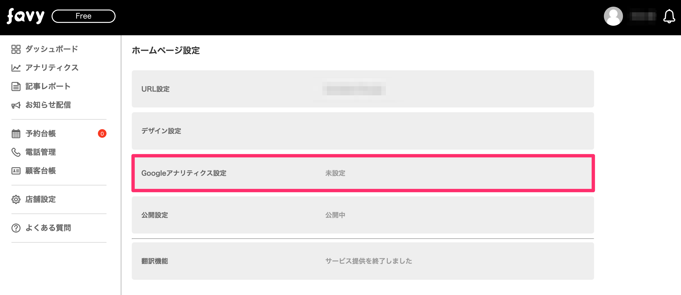 「Googleアナリティクス設定」をクリックする。